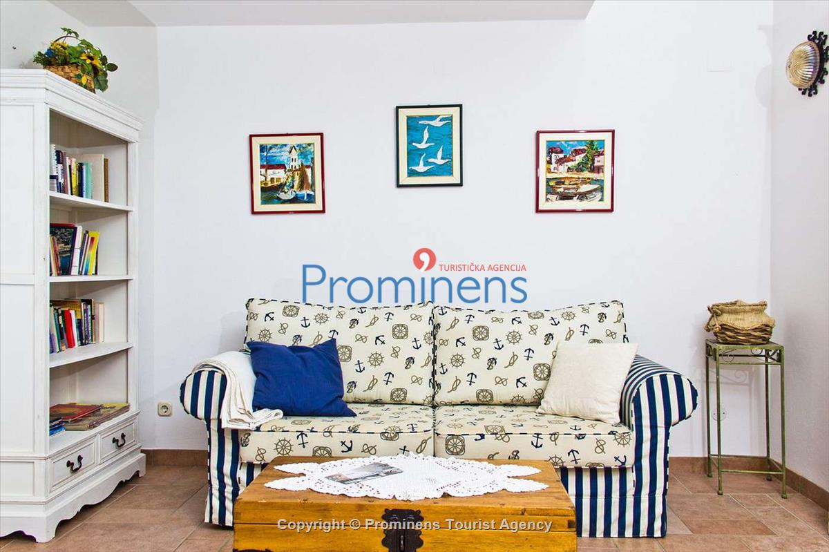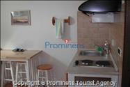 Eine Aussenküche und Grillplatz in kleine Taverna stehen an der Rückseite. Im Soutterain stehen Zwei Apartments nebeneinander, jeder mit eigenem Eingang, jedes Apartment verfügt über einen Wohnraum mit Küche, Badezimmer mit Duche. Auf der Galerie befindet sich das Schlafzimmer mit Doppelbett und noch einen Einzelbett, für ein Kind. Terrasse vor dem Apartment, mit Meerblik. Es stehen in ca. 60 m Entfernung zwei Doppelgaragen für vier Autos zur Verfügung. Das ganze Haus hat WiFi Internet Anschluß, TV/SAT, Klimaanlage. Auf wunsch der Gäste bieten wir auch Verpflegung an ( Frühstück oder Abendessen), Zimmerservice auf Wunsch. Das Haus ist auf einen Kaskaden Terrain gebaut worden, bis zum Haus führen Stufen, ca 100 Stufen